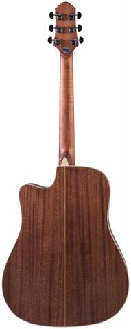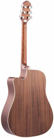 Верхняя дека CRAFTER DE 7/NC выполнена из массива красного кедра (Red Cedar), что дает гитаре глубокий и мощный звук с большой тональной гибкостью. Внешне красный кедр имеет благородную текстуру древесины и затемненный цвет, что хорошо подчеркнуто матовым лаком, которым покрыт корпус.
