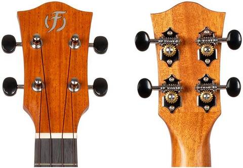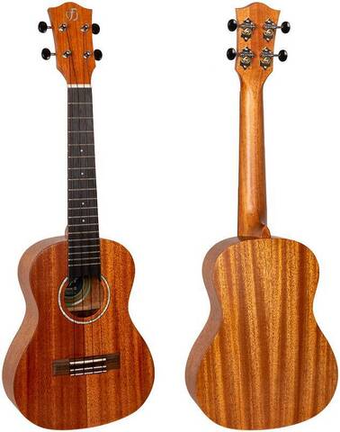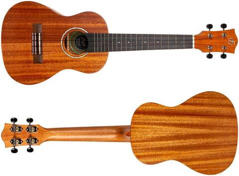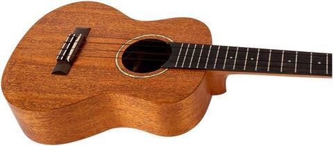 Верхняя дека сделана из массива махагони, которое недаром ценится в качестве материала для изготовления музыкальных инструментов. Кроме красивой текстуры, естественного блеска и красивого цвета с золотистым отливом, это дерево славится мягким звуком и хорошим сустейном. Что делает данную укулеле превосходным инструментом для аккомпанирования вокалу.