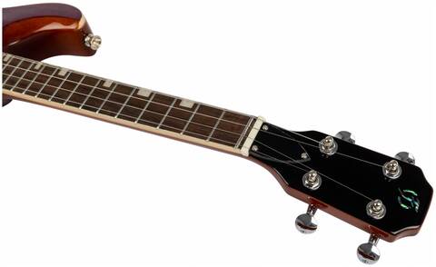ABS-окантовка накладки грифа, регулируемый фиксированный бридж “hardtail”, сквозной бридж, два хамбакера, регулировка тембра и громкости и трёхпозиционный переключатель. С такой классической внешностью и фантастическим звуком вы прокачаете любую площадку! Да, и эта укулеле прекрасно сочетается с любыми примочками или процессорами для электрогитар.