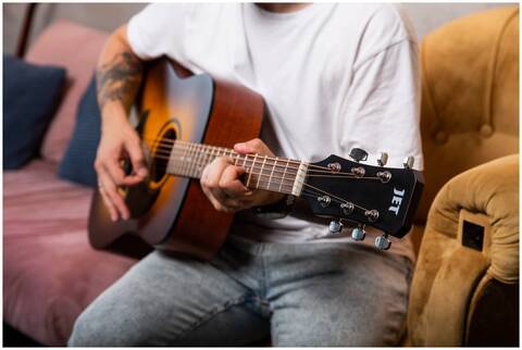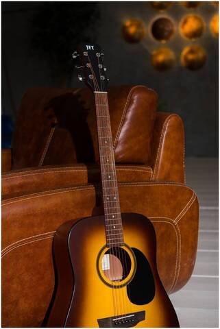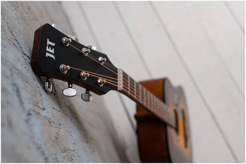 Говоря о конструкции акустических гитар JET особо надо отметить накладку грифа, которую делают из древесины Мербау. Древесина Мербау оказалась намного прочнее и долговечнее. А ее удельная плотность способствует качественному звукоизвлечению.
