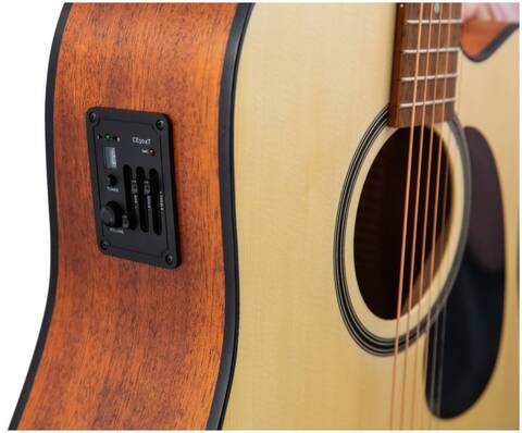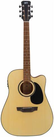Модель JET JDEC-255 OP это электроакустическая гитара в корпусе Дредноут (Dreadnought) с вырезом, с активным звукоснимателем с трехполосным эквалайзером и встроенным тюнером.