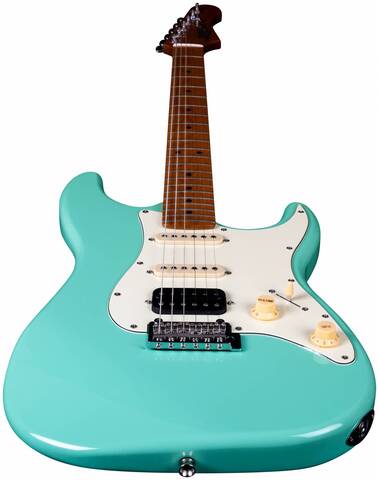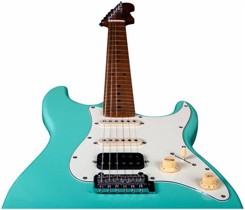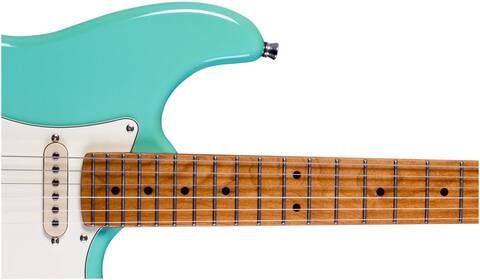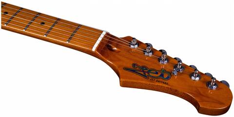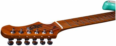 Гриф и накладка на гриф выполнены из печеного клена (roasted maple). При такой обработке поры дерева максимально сжимаются и в процессе использования вода уже не будет выходить, ваша накладка не сожмется и лады не повылазят вне зависимости от влажности и смены температуры. Плюс такое дерево выглядит очень красиво.