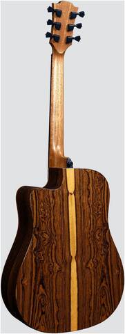 Редкие экзотические материалы, используемые при создании гитар THV30 DCE - массив ситхинской ели «медвежий коготь» и узорчатая древесина бокоте - придают гитаре индивидуальный облик и отражаются в необычном звучании инструмента. Каждая деревянная деталь инструмента проходит тщательный отбор на соответствие эстетическим и звуковым критериям. Это невероятно отзывчивый инструмент с впечатляющим сустейном и богатыми насыщенными средними частотами.